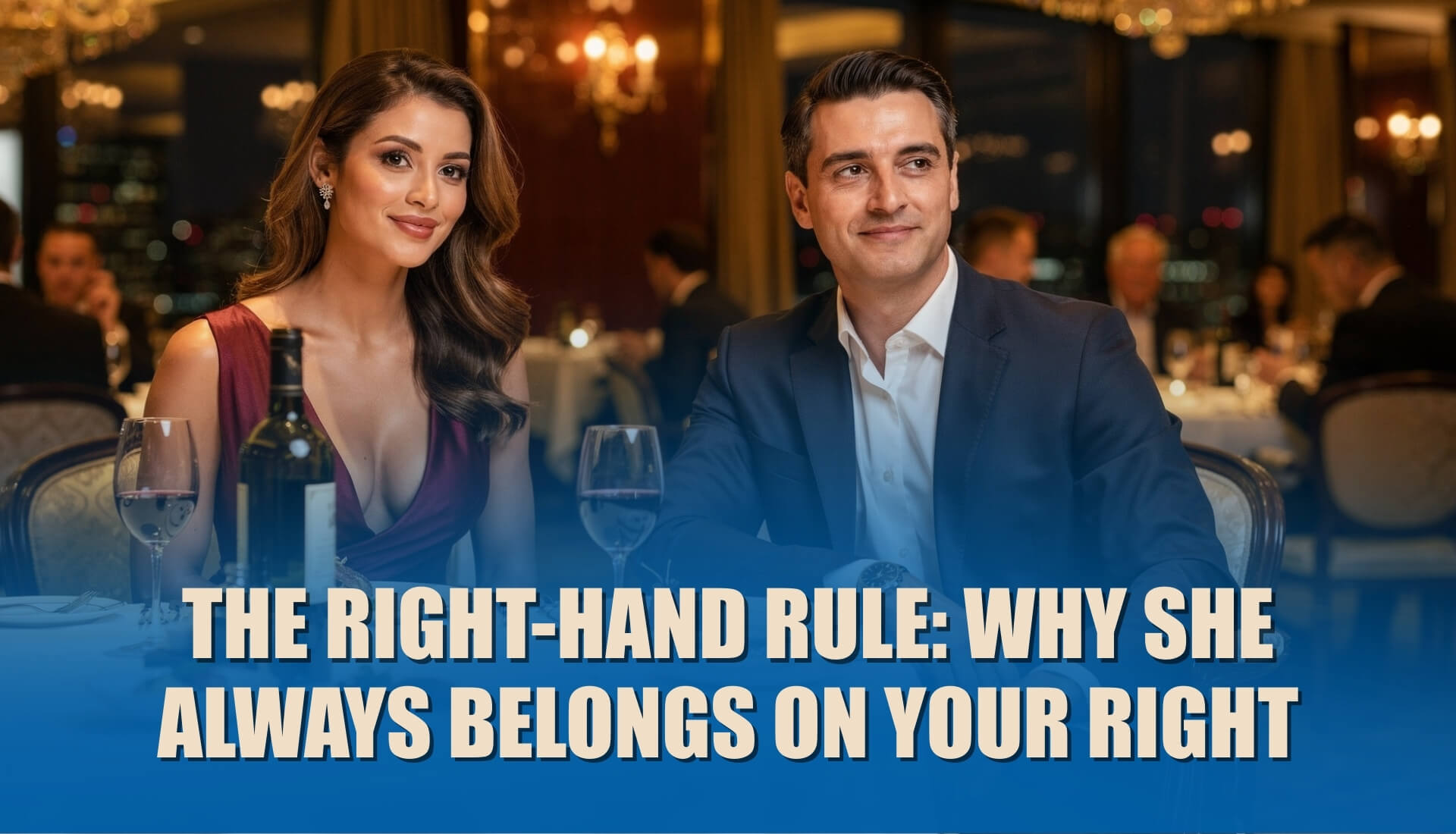 - The Operational Access Zone. When she sits on your right, your leading hand is in the «active zone.» You don’t need an awkward cross-body reach to move a glass, sign a check, or pull her closer. Your movements are natural, fluid, and instantaneous.